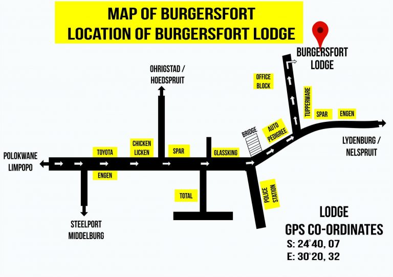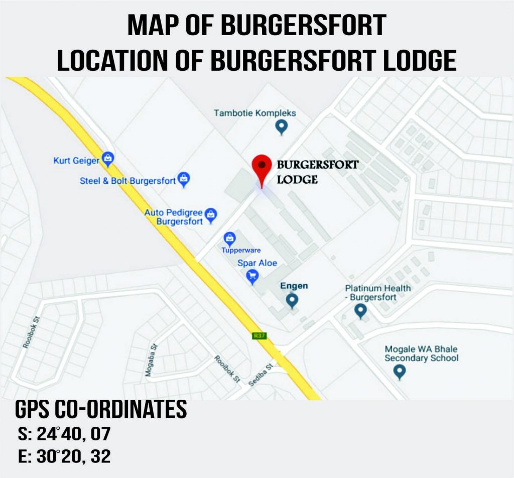 Burgersfort Lodge is situated in the heart of the New Platinum City of Burgersfort. Located on the border of the Bright Mpumalanga and the Loving Limpopo provinces.